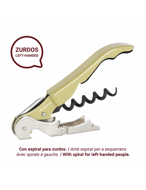 Aquest llevataps està pensat per facilitar l'art d'obrir ampolles de vi per a persones esquerranes, amb una espiral dissenyada específicament per a elles.