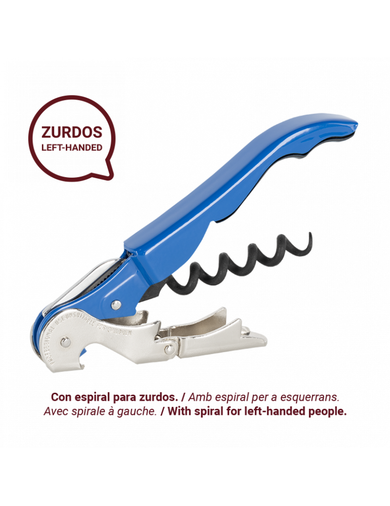 LLEVATAPS DE DOS TEMPS PER A ESQUERRANS: El llevataps de cambrer per a ús professional Classic 500 de Pulltap's, un llevataps amb doble palanca articulada i fulla articulada retràctil, ara amb una espiral especialment dissenyada per a esquerrans.
