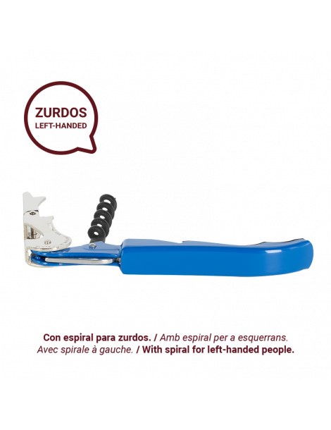 Aquest llevataps està pensat per facilitar l'art d'obrir ampolles de vi per a persones esquerranes, amb una espiral dissenyada específicament per a elles.
