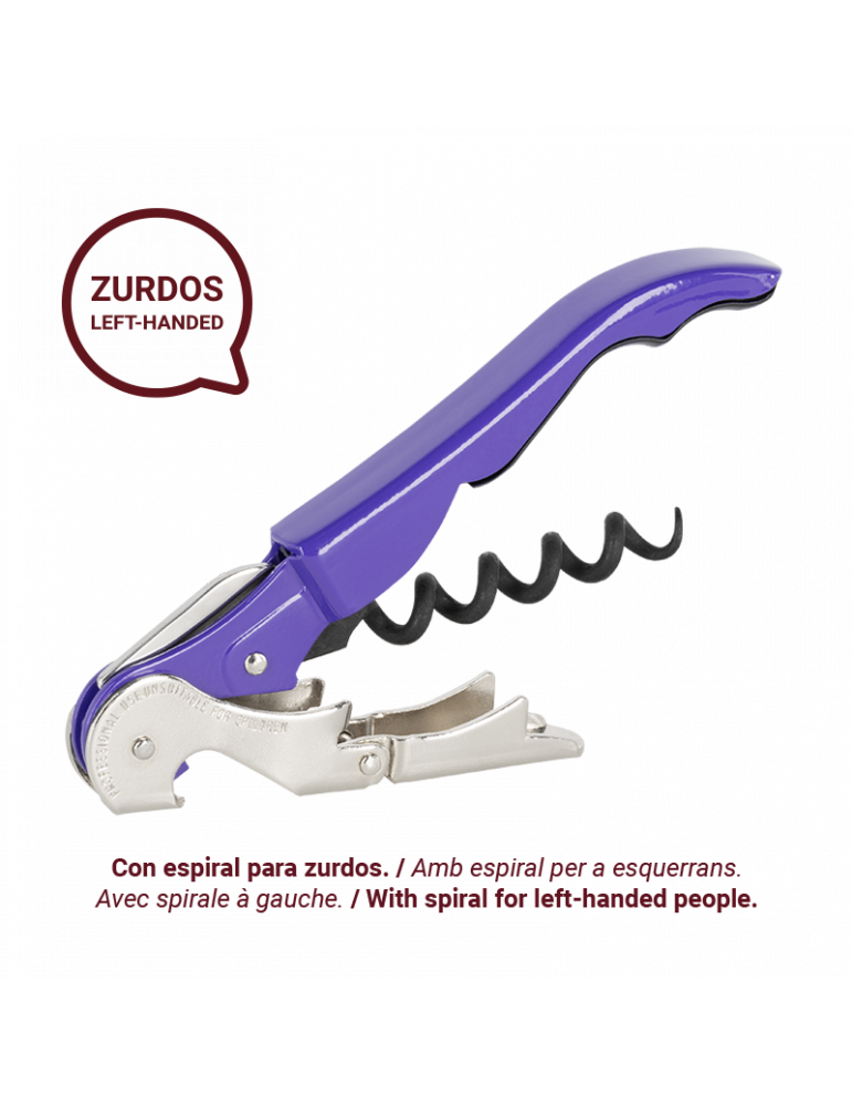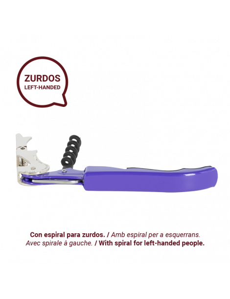 This corkscrew is designed to facilitate the art of cork opening for left-handed people, with a spiral designed specifically for them.