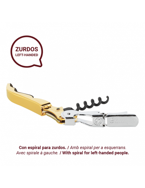 This corkscrew is designed to facilitate the art of cork opening for left-handed people, with a spiral designed specifically for them.
