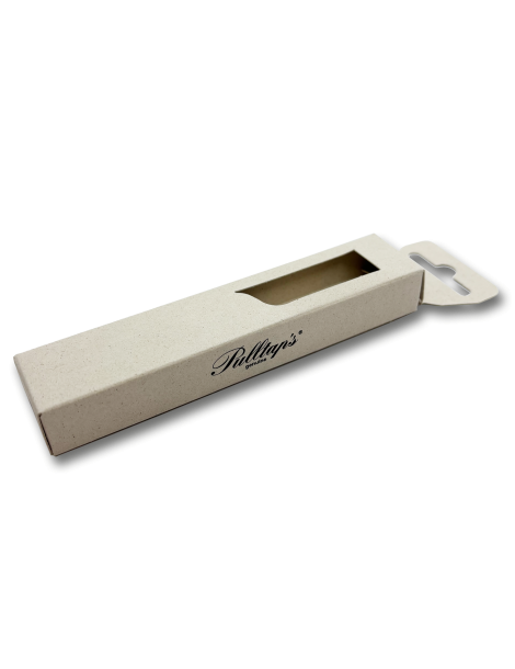 Esta caja de cartón ofrece una solución de packaging elegante y compacta, con una ventana para ver el producto sin necesidad de abrir la caja. El cartón está hecho con residuo agroindustrial de uvas.