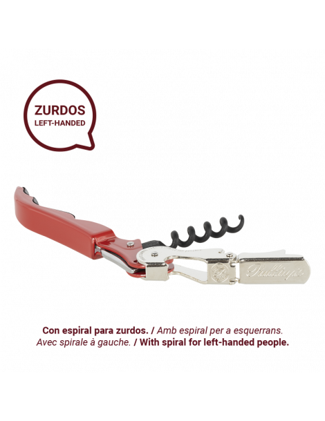 Este sacacorchos está pensado para facilitar el arte del descorche para personas zurdas, con una espiral diseñada específicamente para ellas.