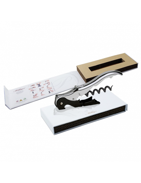 LOTE PROFESSIONAL WHITE 150: El pack incluye un sacacorchos premium de dos tiempos Slider Boss 150 presentado en una elegante caja de cartón blanco con cierre imantado.