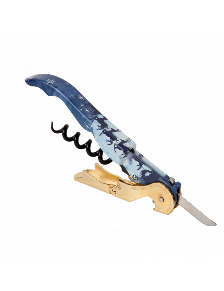 SACACORCHOS DE DOS TIEMPOS NAVIDAD 900: Colección especial Navidad de los sacacorchos Pulltap's Slider 900. Es un sacacorchos con diseño especial navideño, doble palanca articulada dorada, y hoja deslizante con retorno automático.