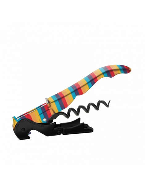 SACACORCHOS DE DOS TIEMPOS RAYADOS 900: Colección especial rayados de los sacacorchos Pulltap's Slider 900. Es un sacacorchos con diseño especial de rayas, doble palanca articulada, y hoja deslizante con retorno automático.