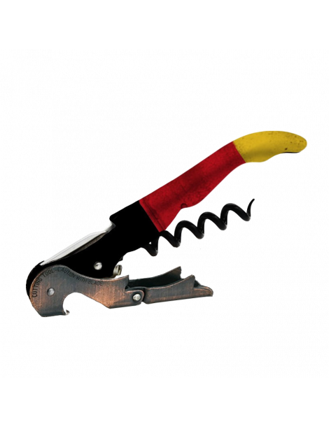 SACACORCHOS DE DOS TIEMPOS COUNTRIES 500: El sacacorchos de Pulltap's más mundial: siéntete identificado con estos sacacorchos de banderas diferentes. Es un sacacorchos con diseño especial con una bandera, doble palanca articulada, y hoja articulada retráctil.