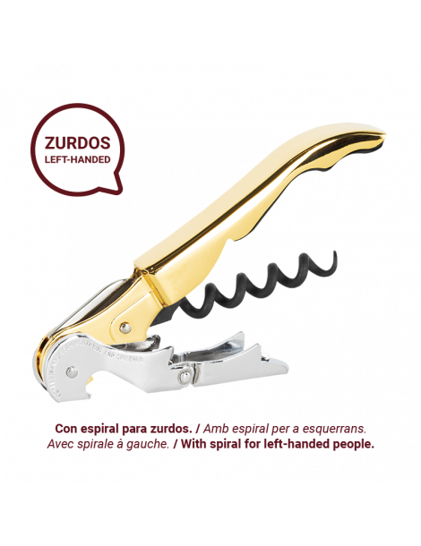 Ce tire-bouchon professionel est conçu pour faciliter l'art d'ouvrir le bouchon aux gauchers, avec une spirale conçue spécialement pour eux.